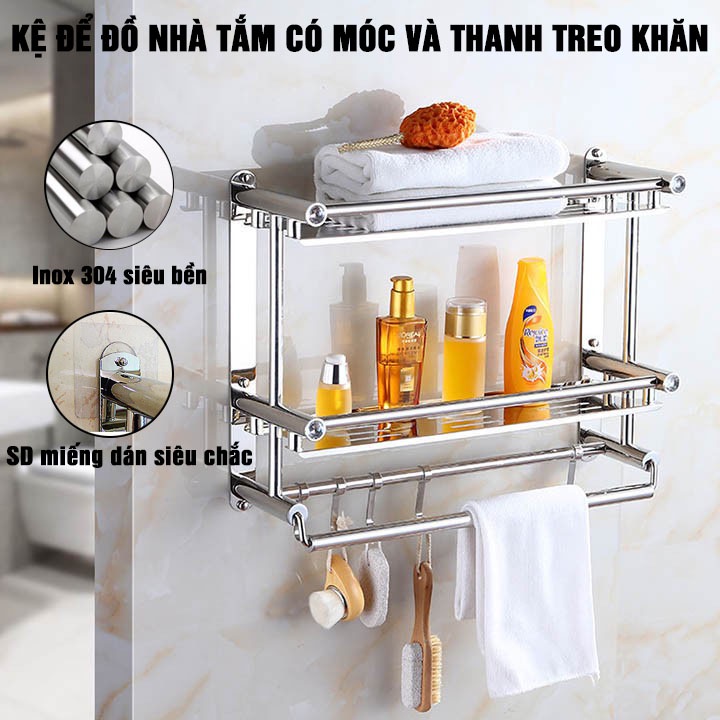 Kệ Để Đồ Nhà Tắm Inox 304 Siêu Bền, Kệ Phòng Tắm Treo Khăn Tắm 3 Tầng Lắp Đặt Dán Tường Tiện Lợi