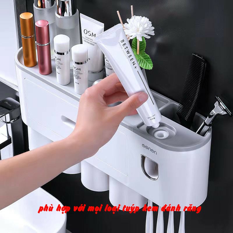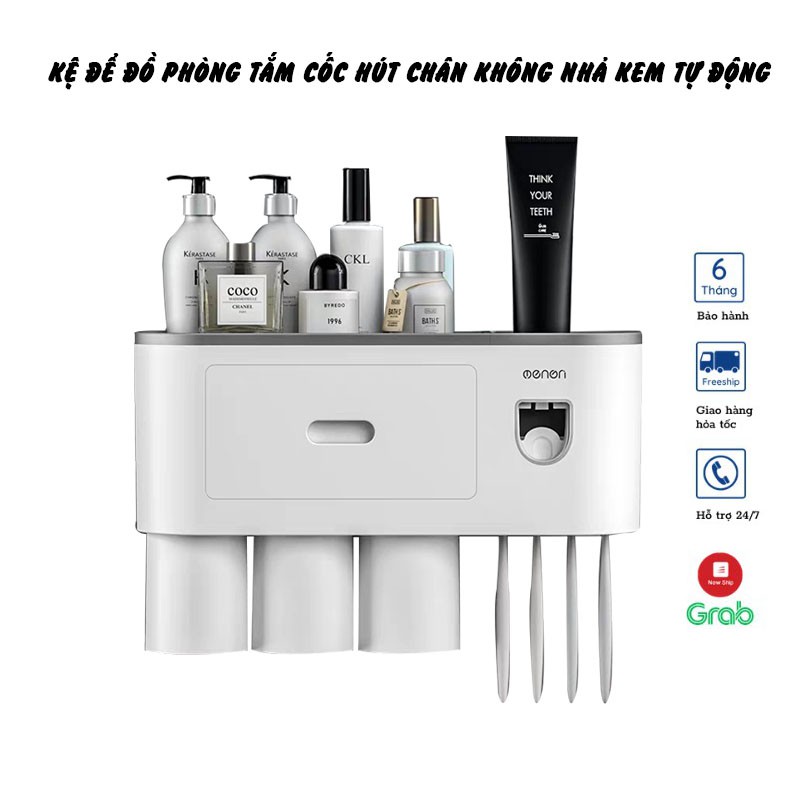 * Kệ để đồ nhà tắm, bộ nhả kem đánh răng 1,2,3,4 cốc enon thông minh dán tường cao cấp