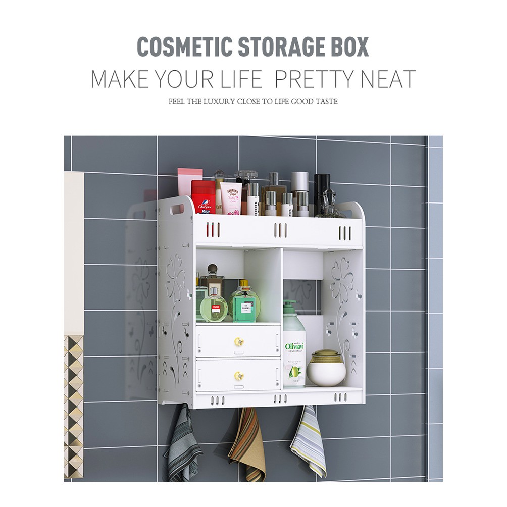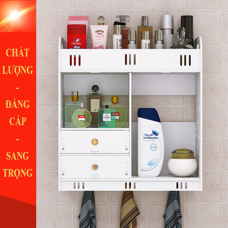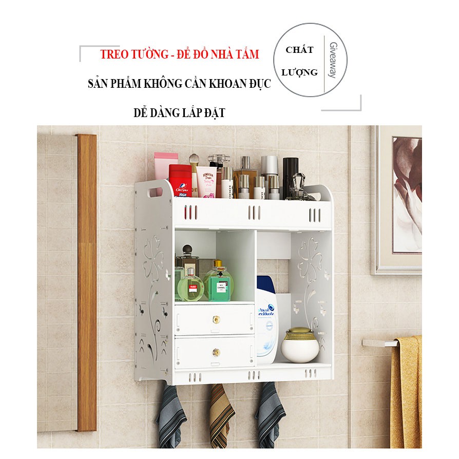 Kệ để đồ nhà tắm đa năng, kệ để đồ treo tường không cần khoan đụcChất liệu: Gỗ nhựa PVC, Picomat