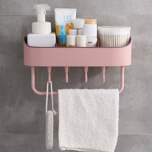 Giới thiệu Kệ để đồ nhà tắm dán tường siêu dính có 4 móc thanh treo khăn tiện dụng dễ dàng tháo lắp màu xanh vàng trắng