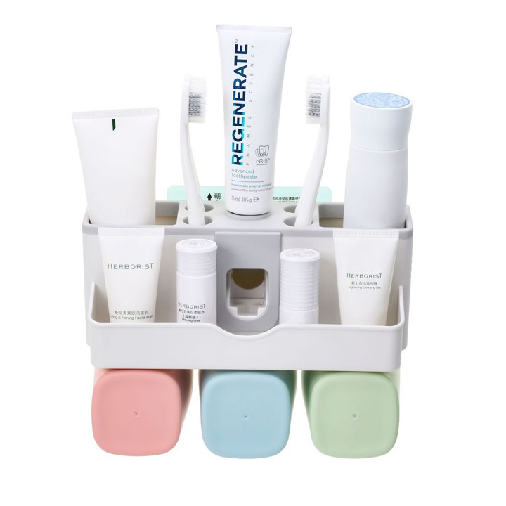 Giới thiệu Kệ để đồ nhà tắm để bàn chải đánh răng khay nhả kem tự động tặng kèm cốc