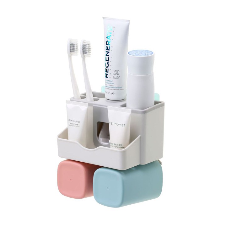 Kệ để đồ nhà tắm để bàn chải đánh răng khay nhả kem tự động tặng kèm cốc K3