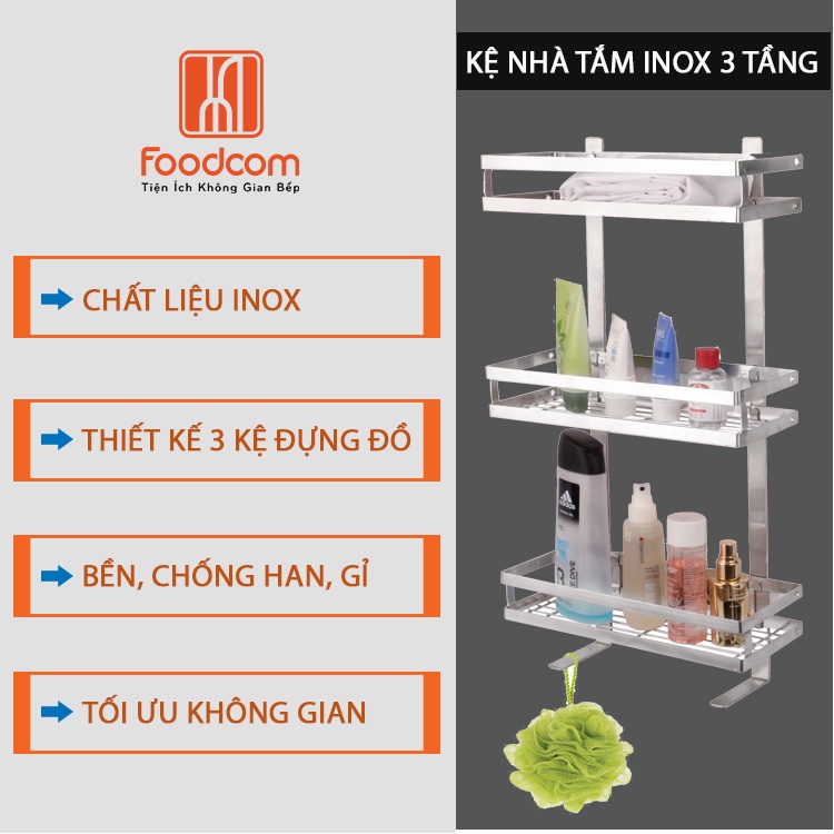 Nhà cửa & Đời sống > Đồ dùng phòng tắm > Kệ để đồ phòng tắm || Kệ để đồ nhà tắm Foodcom đa năng 2-3 tầng cao cấp, chất liệu inox không han gỉ, có keo 3M chắc chắnCòn hàng