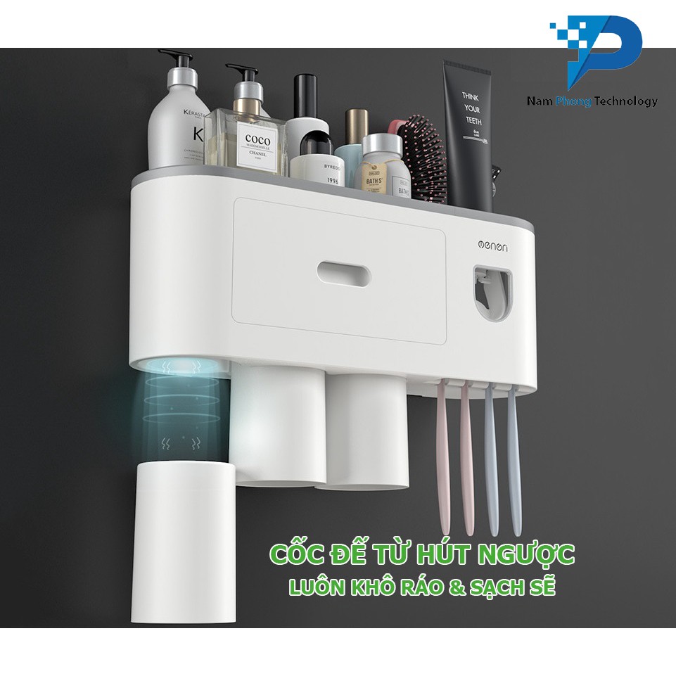 - Cốc đánh răng, súc miệng treo lên kệ bằng sức hút nam châm từ tính giúp cốc gọn gàng. Do đó, cốc sẽ luôn được giữ khô ráo và sạch sẽ (do được dốc ngược khi treo)