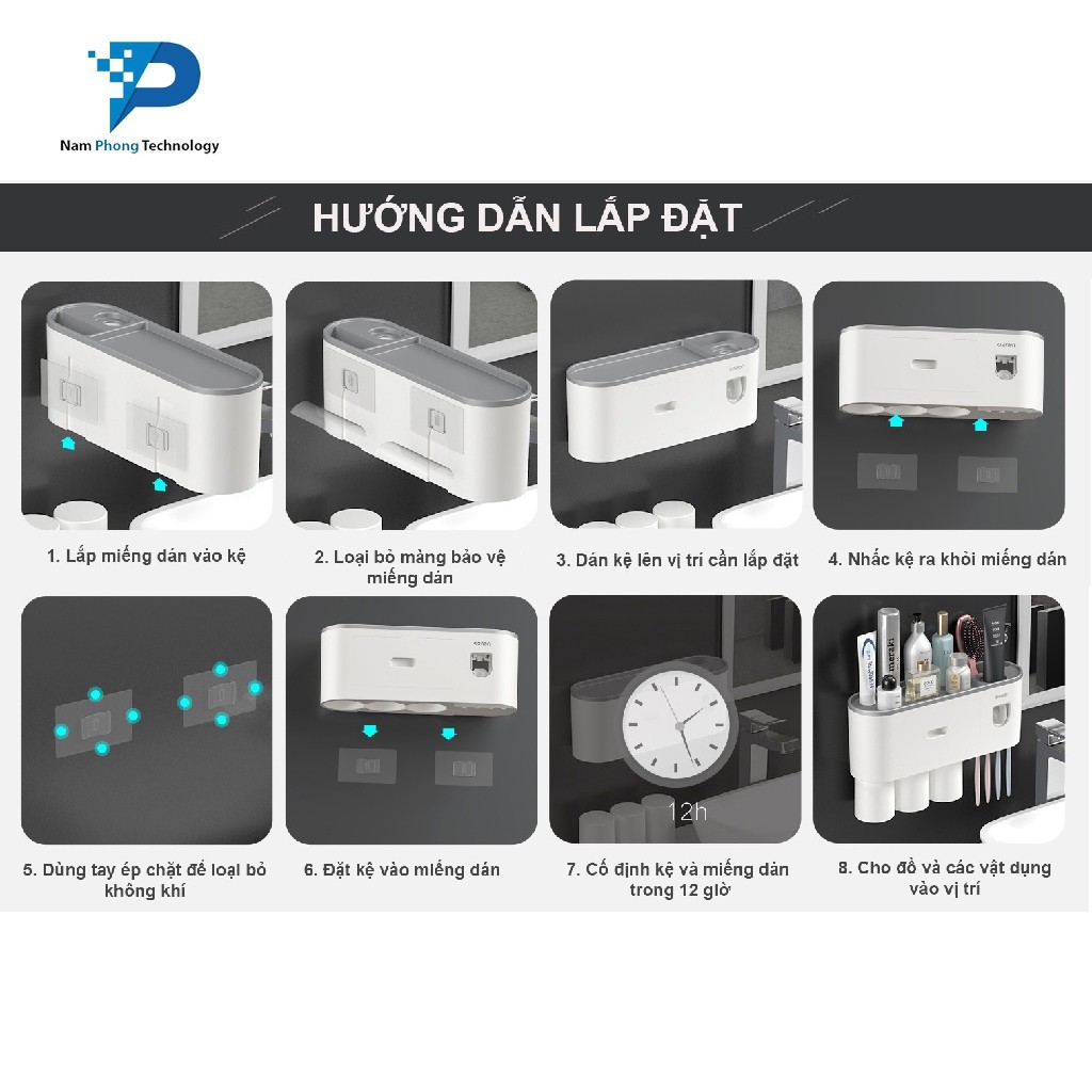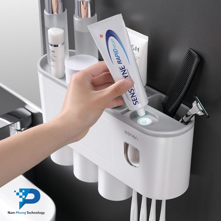 - Bộ có tích hợp phần tự bóp kem và nhả kem đánh răng tự động thông minh