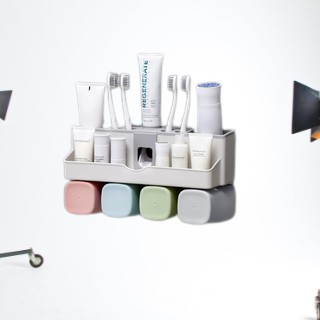 Giới thiệu Kệ để đồ nhà tắm giá treo bàn chải đánh răng, nhả kem tự động kèm 2/3/4 cốc, không cần khoan tường