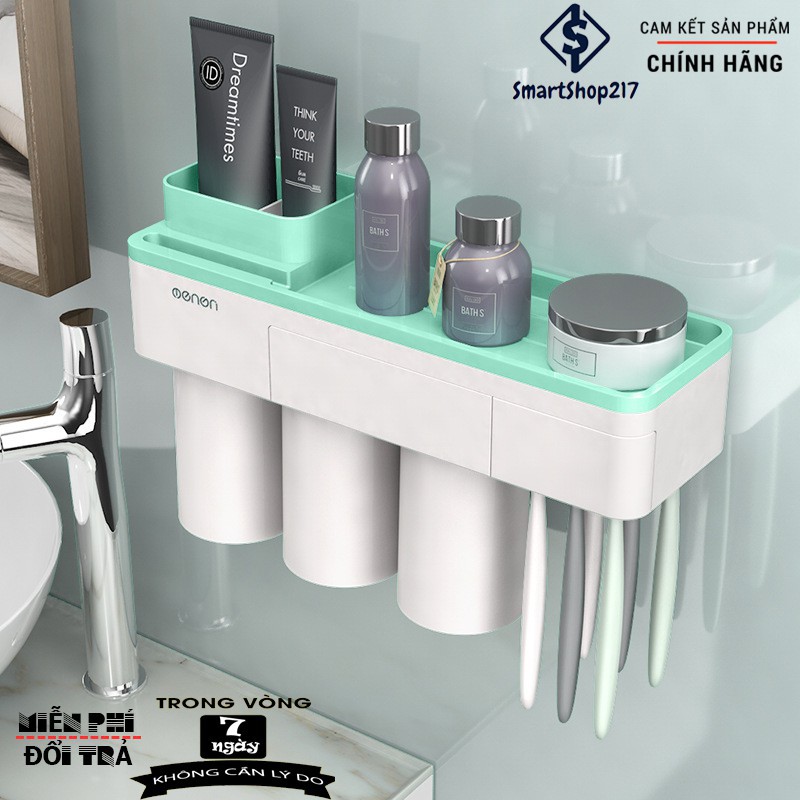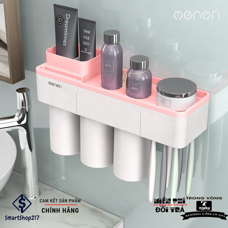 Kệ Để Đồ Nhà Tắm + Hộp Nhả Kem Đánh Răng Thông Minh - Thương Hiệu Nhật Bản OENON (tặng kèm cốc đế từ)