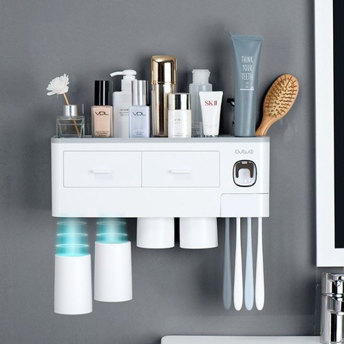 Kệ để đồ nhà tắm hút chân không 2 cốc, 3 cốc, 4 cốc - Bộ nhả kem đánh răng siêu tiện lợi cho mọi gia đình