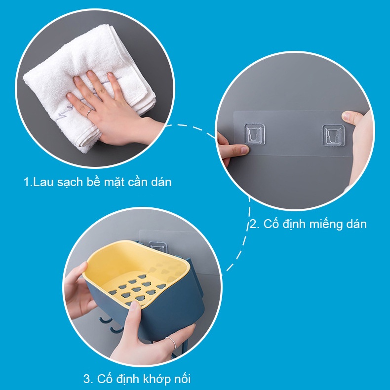 + Kệ để đồ nhà tắm lắp đặt 3 bước dễ dàng, cố định chắc chắn thông qua miếng dán tường siêu dính
