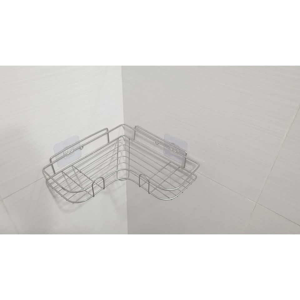 Kệ góc để đồ nhà tắm inox 304, Kệ góc dán tường phòng tắm kèm 2 miến dán pvc siêu chắc