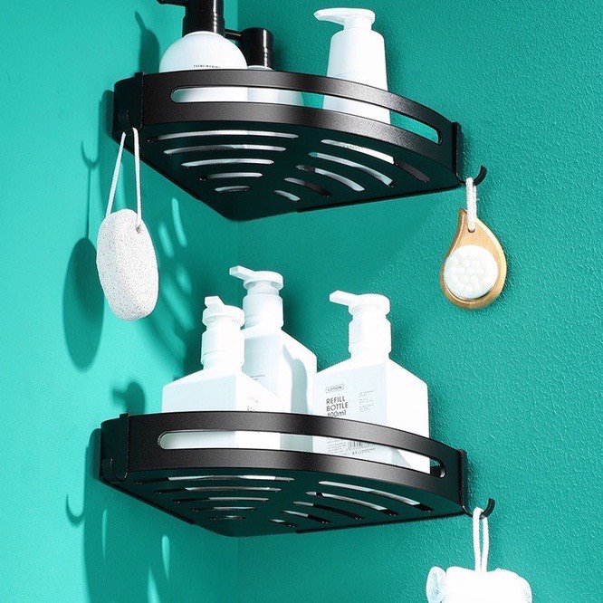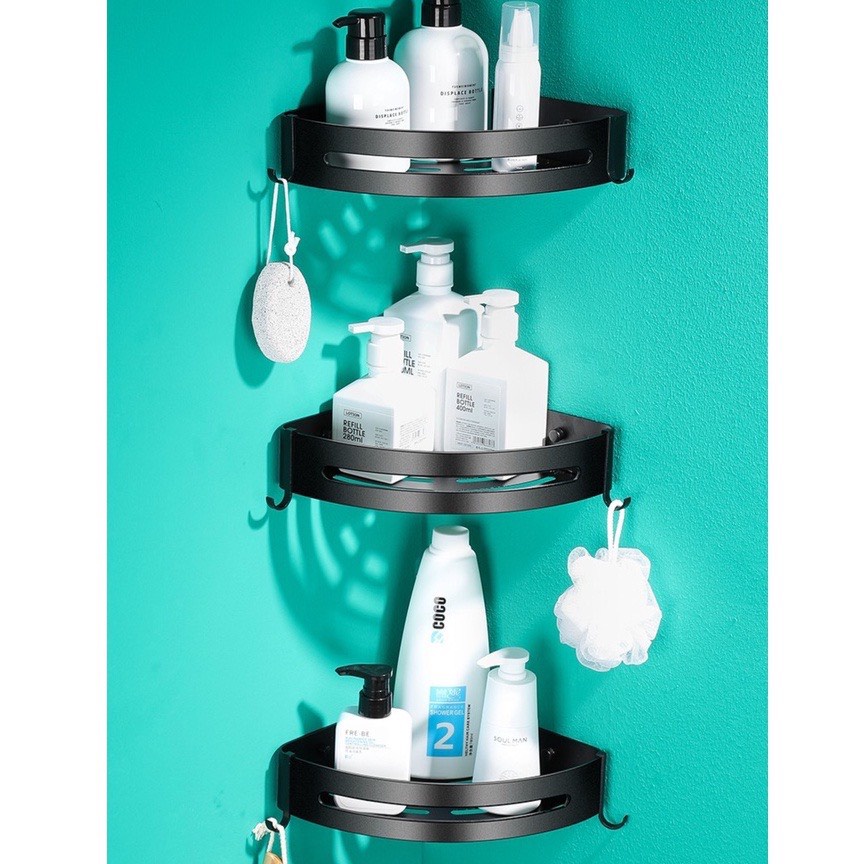 - Kệ góc, Giá đỡ treo dán góc tường dễ dàng tháo lắp nơi phòng tắm, nhà bếp, phòng ngủ đựng mỹ phẩm, gia vị.