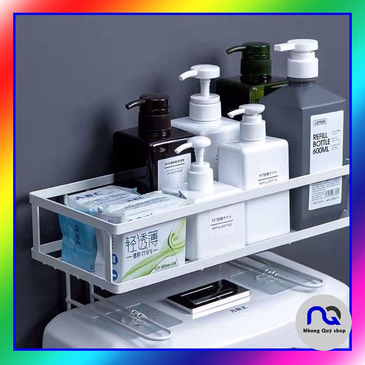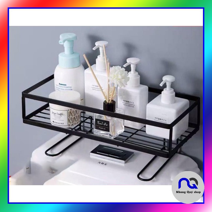 Kệ để đồ nhà tắm, kệ sắt để đồ nóc bồn cầu thông minh không cần khoan đục sơn tĩnh điện chống han gỉ tiện dụng hữu ích