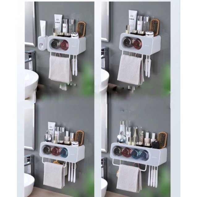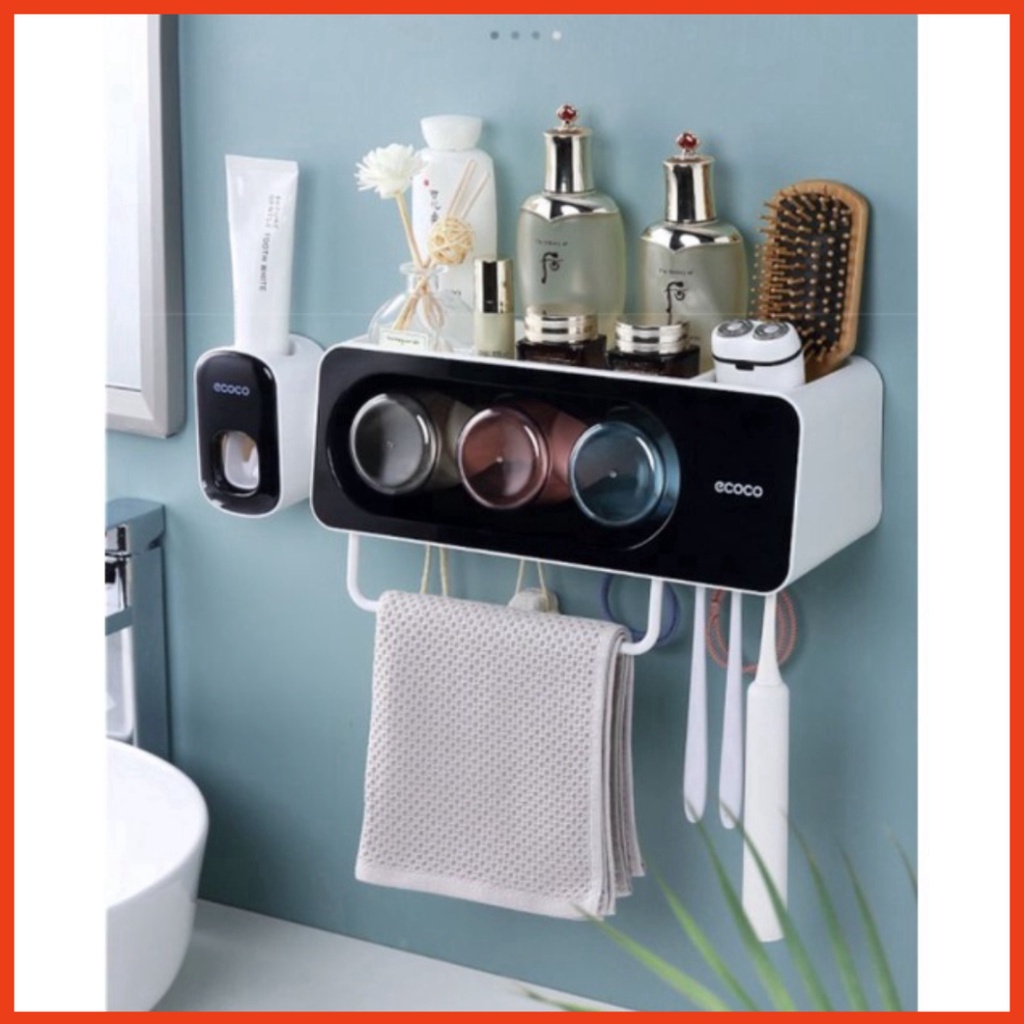 Nhà cửa & Đời sống > Đồ dùng phòng tắm > Kệ đựng bàn chải, kệ nhả kem đánh răng || Kệ để đồ nhà tắm kèm 3 cốc và thanh treo khăn ECOCO 2112 GDTACòn hàng