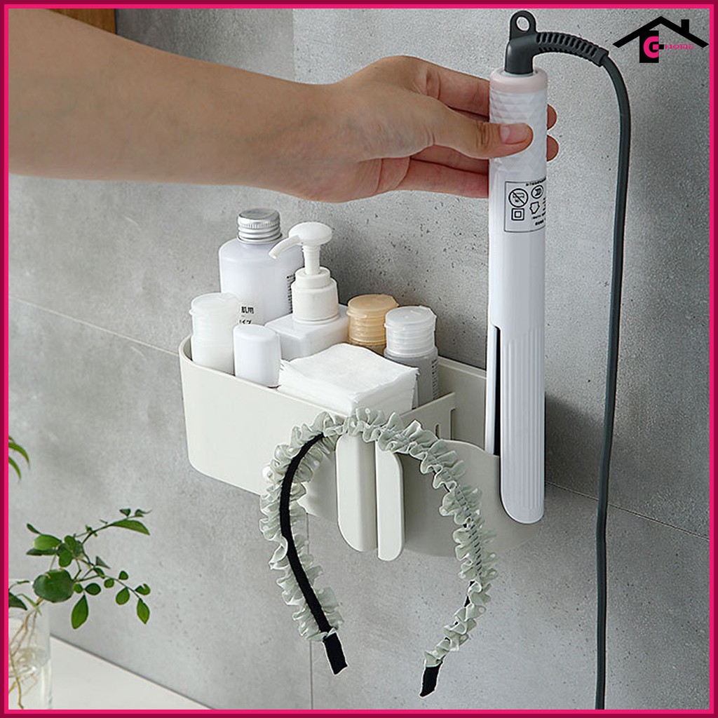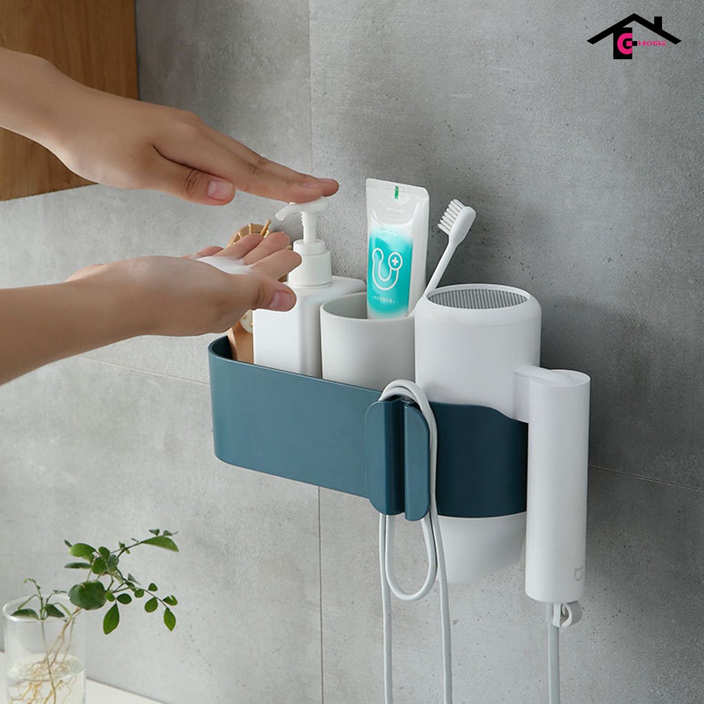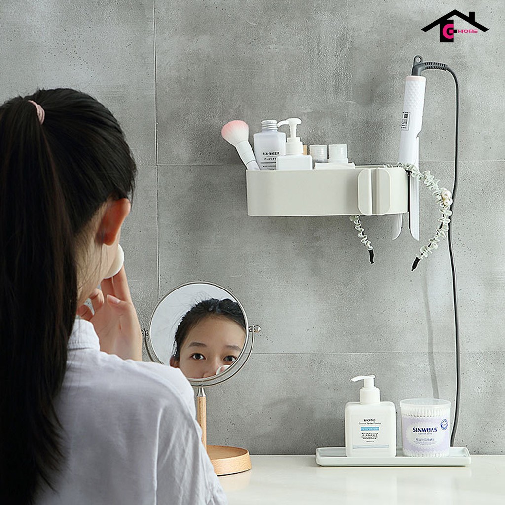+ 2 ngăn riêng biệt: 1 ngăn treo máy sấy và 1 ngăn có khe thoát nước đa năng: mỹ phẩm, lược, bàn chải, kem đánh răng,....