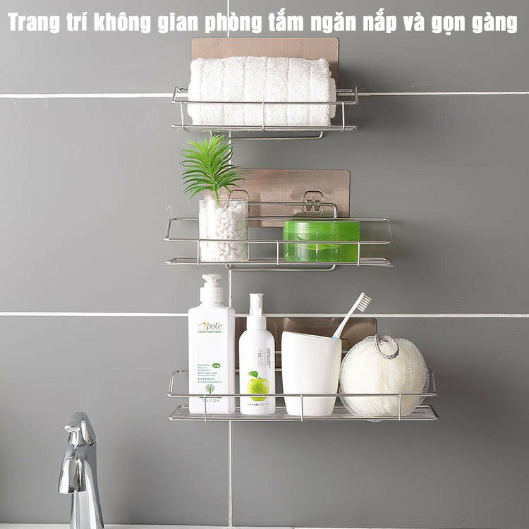 Giới thiệu Kệ để đồ Nhà Tắm, Nhà Bếp Không Gỉ Dán Tường Siêu Dính Chịu Lực