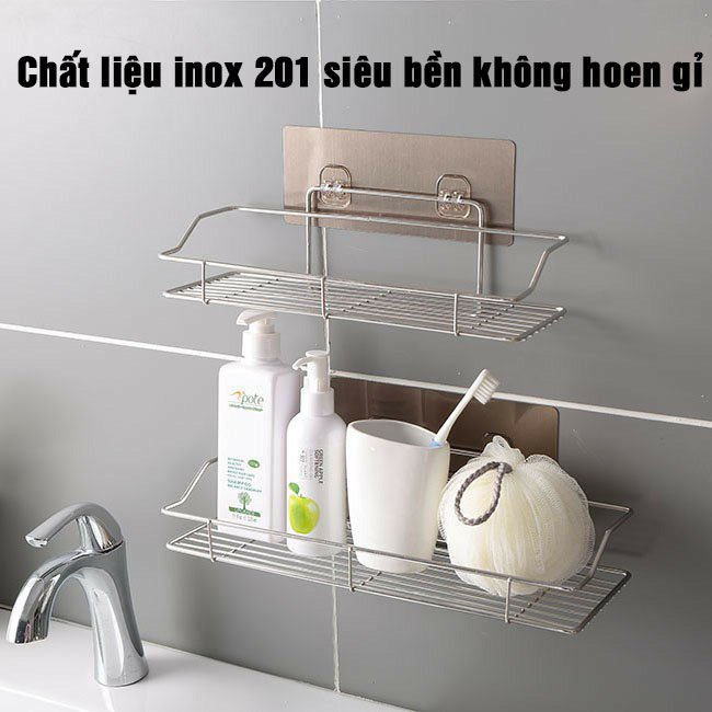 Kệ để đồ Nhà Tắm, Nhà Bếp Không Gỉ Dán Tường Siêu Dính Chịu Lực