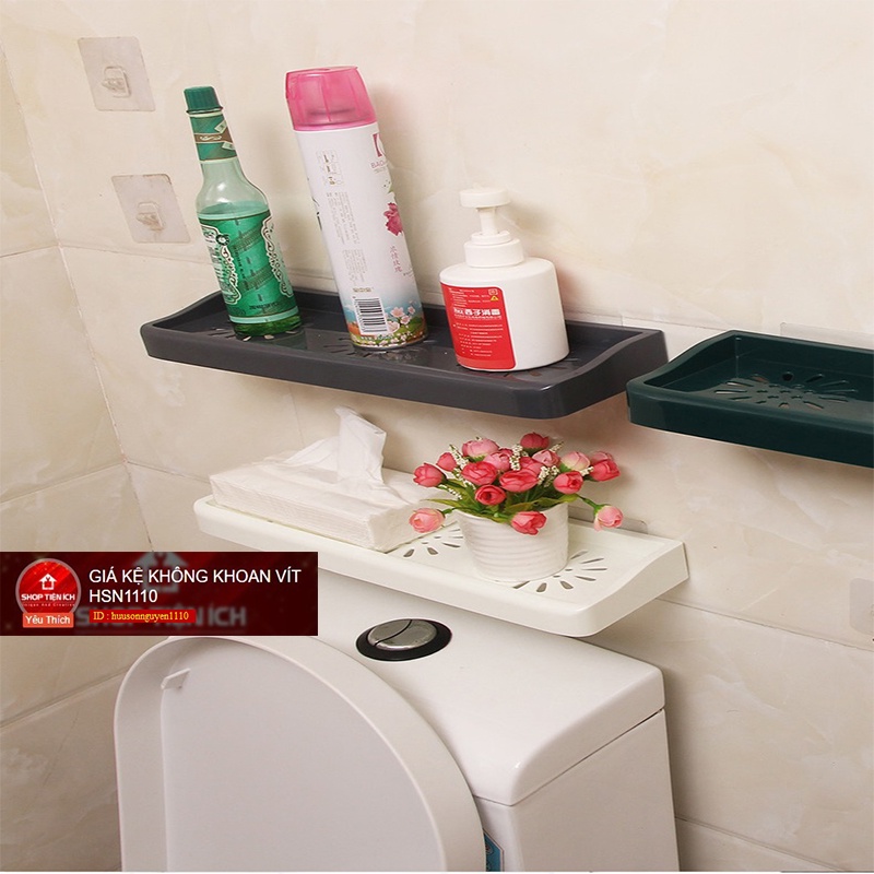 Giá kệ nhà tắm, phòng bếp tiện ích làm bằng nhựa cứng cáp , độ bền cao, thiết kế độc đáo với 2 miếng dán gài chắc chắn + bề mặt dài đến 40cm giúp bạn sắp xếp gọn gàng các vật dụng, vừa giúp bạn tiết kiệm không gian, là sản phẩm tiện dụng được rất nhiều các gia đình yêu thích . Dưới kệ cũng có 3 khe thoát nước