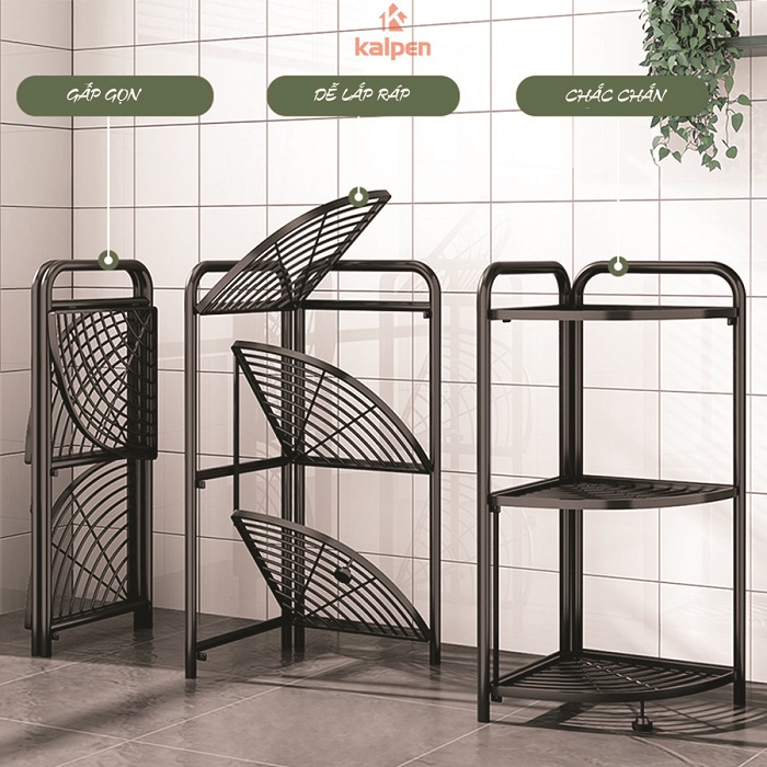 `KỆ GÓC XẾP GỌN THÔNG MINH♻️ Đây là loại kệ gấp gọn rất thông minh, các chị có thể tự tháo lắp được chỉ cần mở hộp ra là dùng luôn thôi.