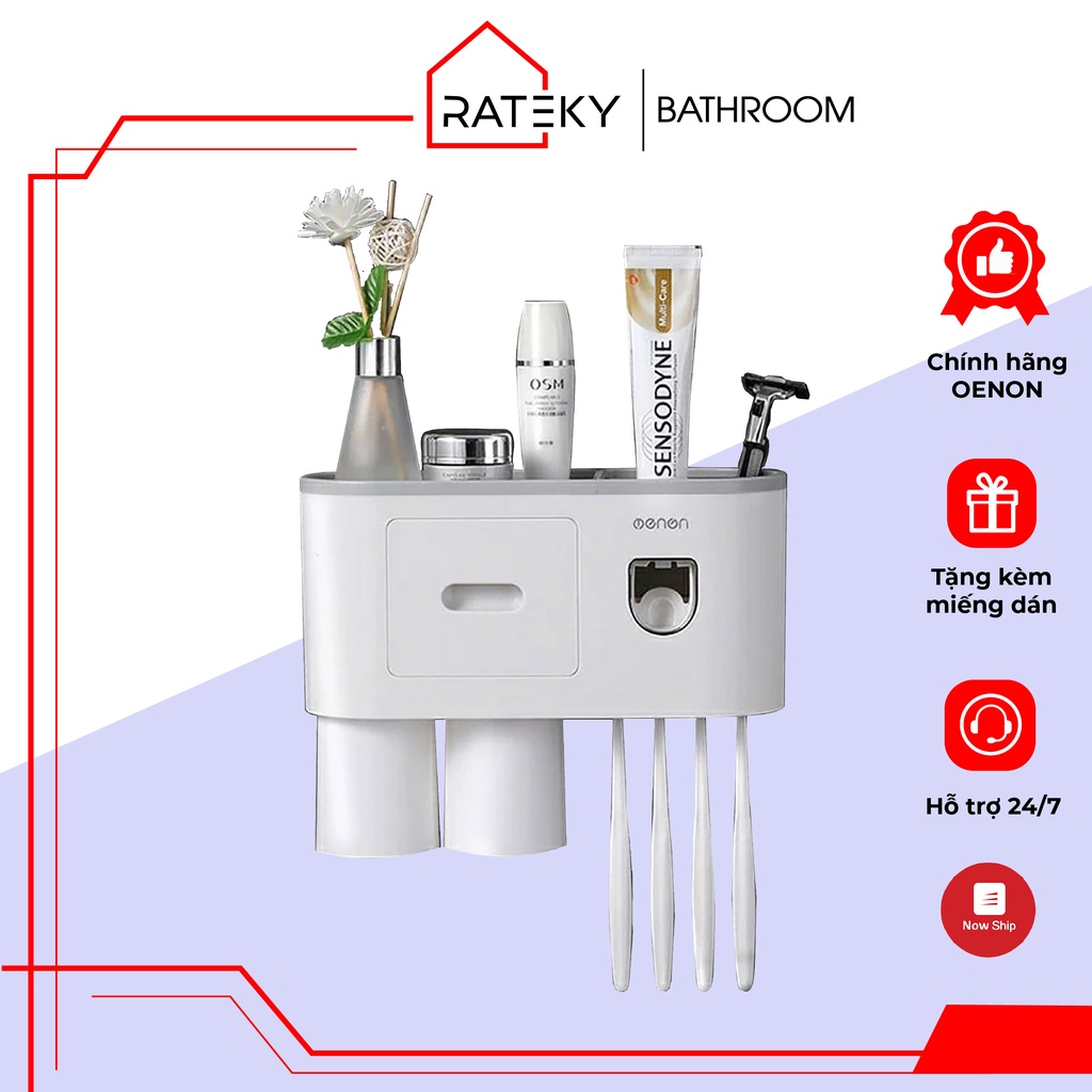 Nhà cửa & Đời sống > Đồ dùng phòng tắm > Kệ đựng bàn chải, kệ nhả kem đánh răng || Kệ để đồ nhà tắm thông minh OENON kèm cốc dán tường tiện lợi để bàn chải, có bộ nhả kem tự độngCòn hàng