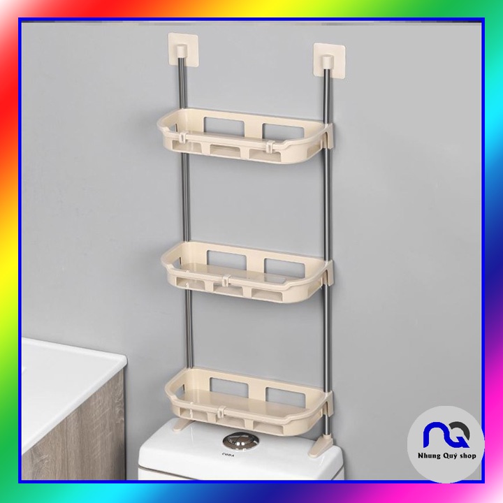 [TẶNG KÈM 02 MIẾNG DÁN DỰ PHÒNG] Kệ để đồ nhà tắm trên nắp bồn cầu 2 tầng, 3 tầng dán tường không khoan đục