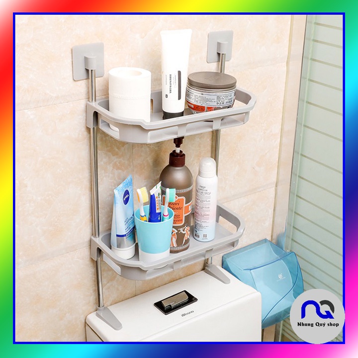 Nhà cửa & Đời sống > Đồ dùng phòng tắm > Kệ để đồ phòng tắm || Kệ để đồ nhà tắm trên nắp bồn cầu 2 tầng, 3 tầng dán tường không khoan đụcCòn hàng