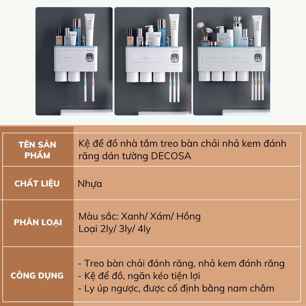 THÔNG TIN SẢN PHẨMKệ để đồ nhà tắm treo bàn chải nhả kem đánh răng dán tường Decosa