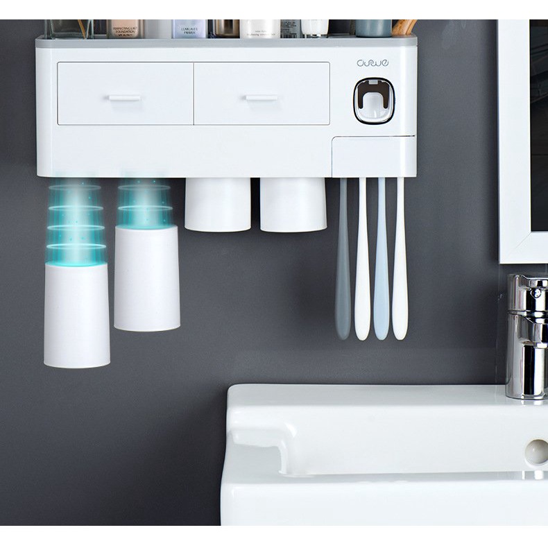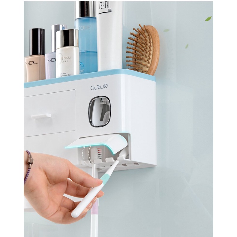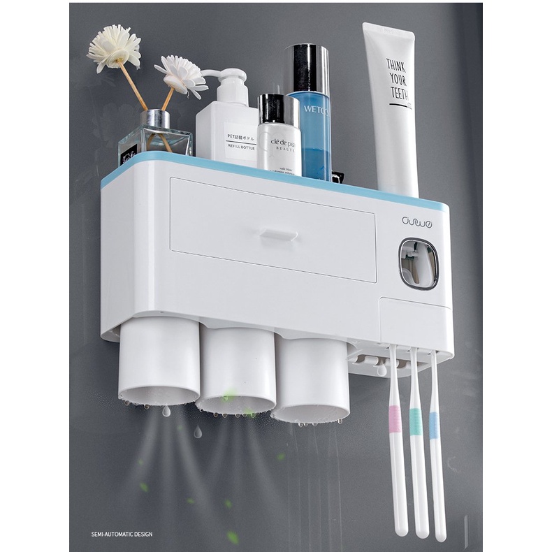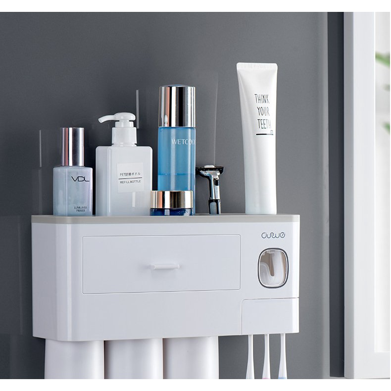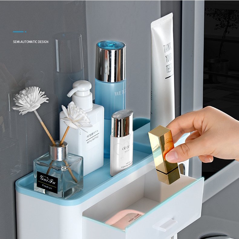 Kệ để đồ nhà tắm và bàn chải đánh răng có cốc kèm nhả kem liền theo