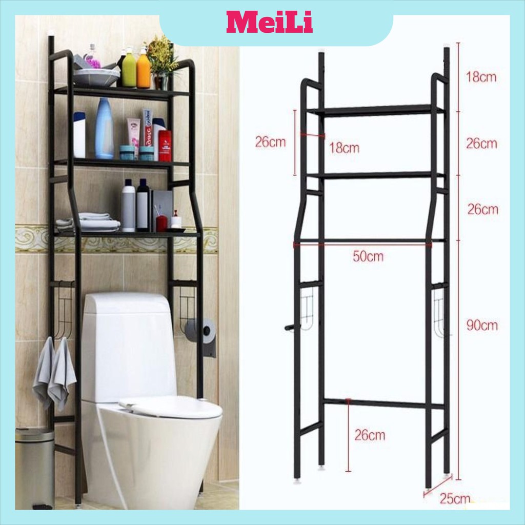 Kệ 3 tầng để đồ phía trên bồn cầu tiết kiệm không gian sẽ giúp cho các bạn tận dụng không gian phía trên của bồn vệ sinh để sắp đặt các đồ dùng rất tiện ích và tạo nên không gian sang trọng cho nhà tắm.– Chất liệu: Giá để đồ được làm bằng sắt sơn tĩnh điện rất bền và chắc chắn
