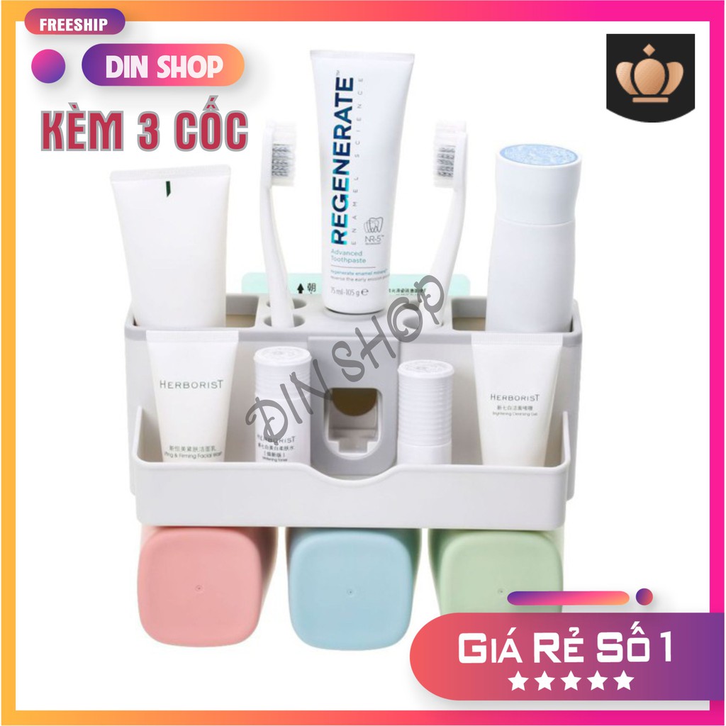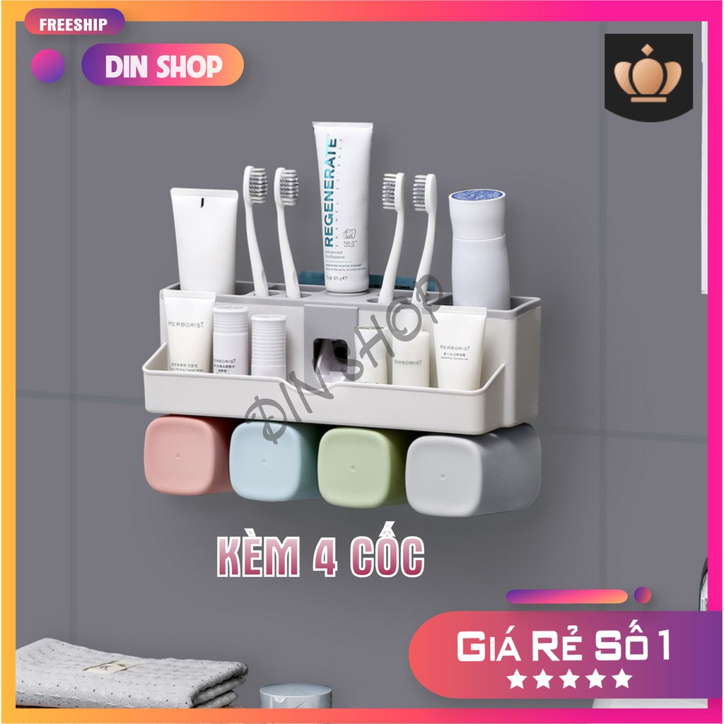 Kệ để đồ nhà tắmKỆ NHÀ VỆ SINH️ Giá treo bàn chải đánh răng, nhả kem tự động kèm 2/3/4 cốc, không cần khoan tường