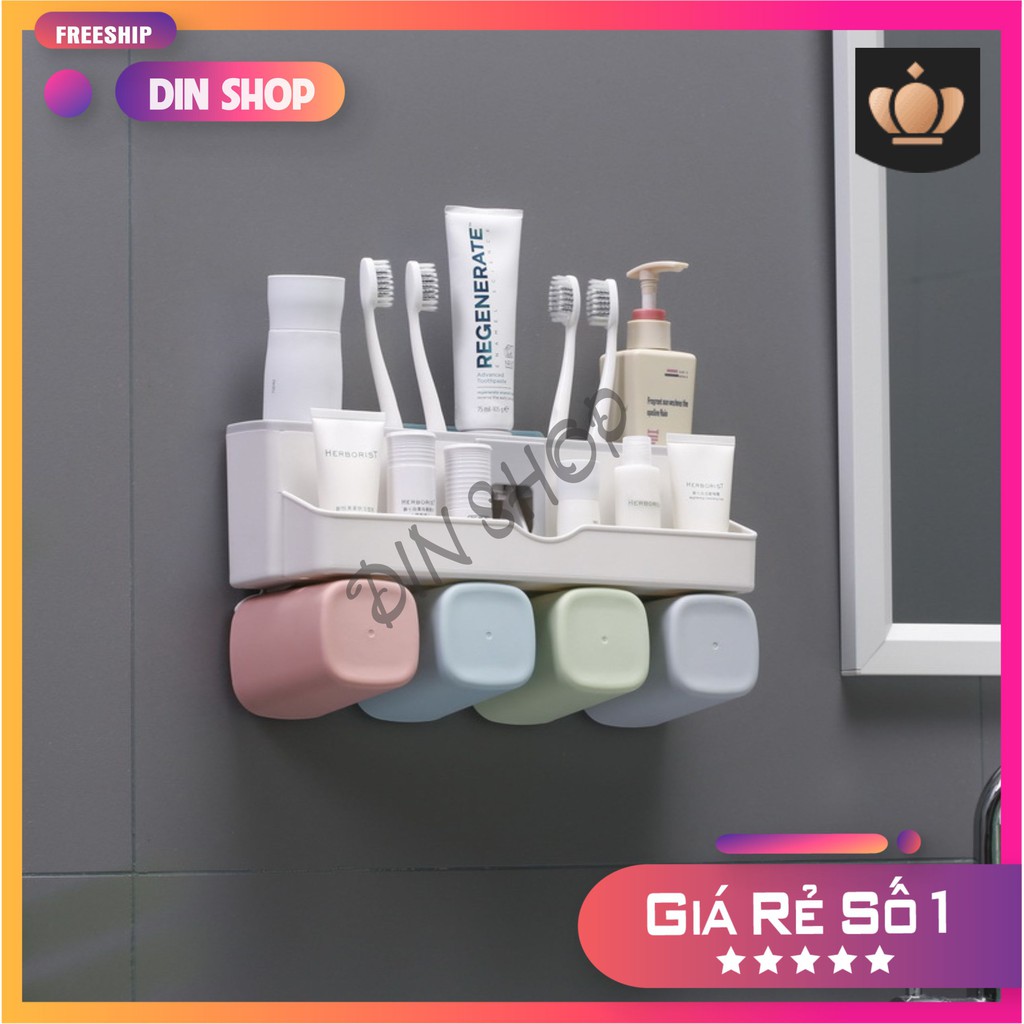 Nhà cửa & Đời sống > Đồ dùng phòng tắm > Kệ đựng bàn chải, kệ nhả kem đánh răng || Kệ để đồ nhà tắmKỆ NHÀ VỆ SINH️ Giá treo bàn chải đánh răng, nhả kem tự động kèm 2/3/4 cốc, không cần khoan tườngCòn hàng