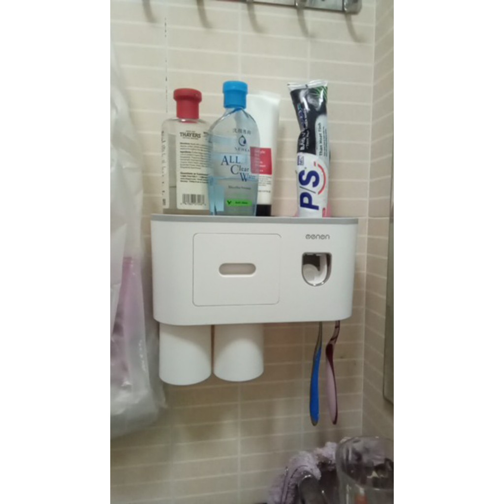 - Bộ sản phẩm bao gồm: Kệ đựng đồ đa năng - để bàn chải đánh răng - để cốc đánh răng - nhả kem đánh răng tự động - ngăn kéo đựng đồ+ chỗ để sữa tắm - sữa rửa mặt - dầu gội - đựng bông ngoái tay - điện thoại + cốc nhựa xinh xắn