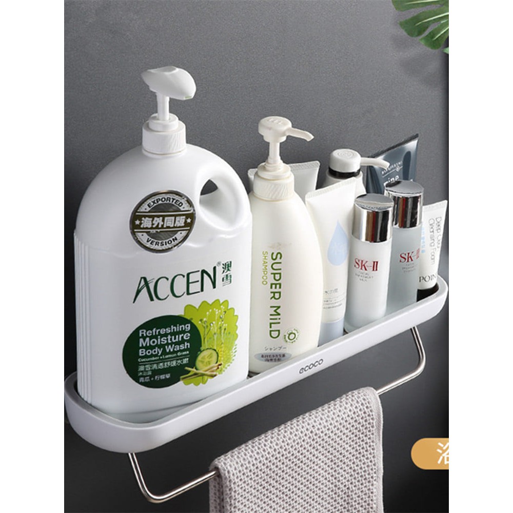 - Nhà vệ sinh nhà bạn lúc nào cũng lỉnh kỉnh sữa tắm, dầu gội, kem đánh răng,…và còn nhiều đồ dùng hơn nữa. Bạn muốn thu gọn chúng mà vẫn đảm bảo sự tiện lợi trong quá trình sử dụng? Hãy sử dụng ngay kệ để đồ nhà tắm có thanh treo khăn tắm thương hiệu ECOCO nhé!Kệ để đồ phòng tắm đa năng tiện ích Ecoco kèm thanh inox SUS 304 treo khăn mặt.