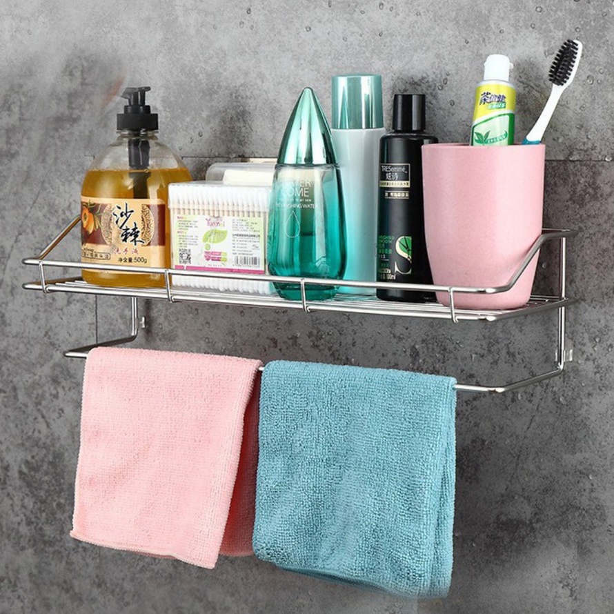 Nhà cửa & Đời sống > Đồ dùng phòng tắm > Kệ để đồ phòng tắm || Kệ Để Đồ Phòng Tắm, Giá Đựng Đồ Nhà Tắm Inox Loại Liền Móc Treo Thông Minh Dán Tường Siêu TrắcCòn hàng