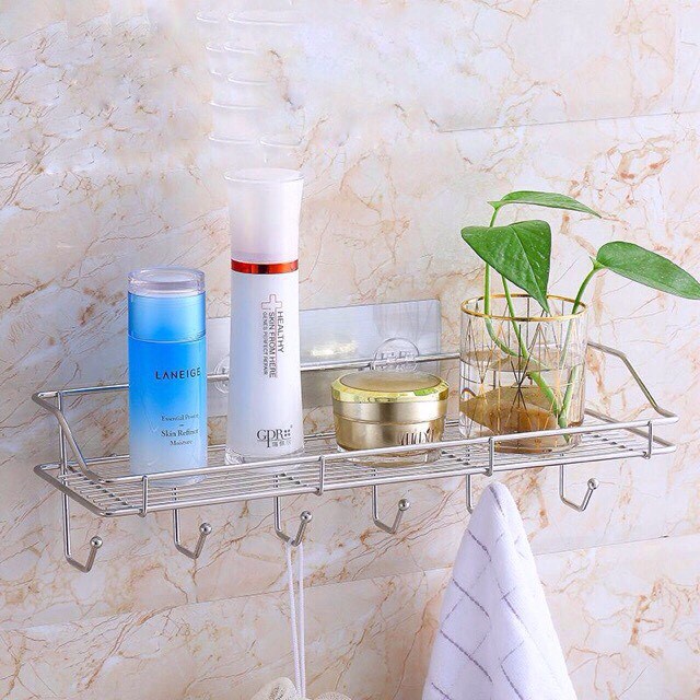 Giới thiệu Kệ Để Đồ Phòng Tắm, Giá Đựng Đồ Nhà Tắm Inox Loại Liền Móc Treo Thông Minh Dán Tường Siêu Trắc