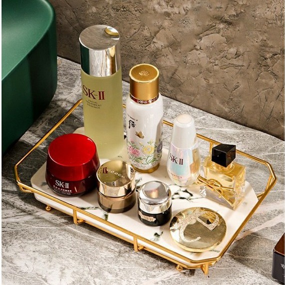 Kệ Để Đồ Phòng Tắm Hình Chữ Nhật, Khay Đựng Mỹ Phẩm Vân Đá Cẩm Thạch Sang Trọng