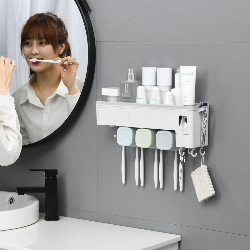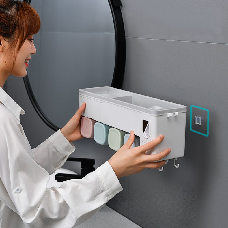 Kệ để đồ phòng tắm, kệ để bàn chải đánh răng nhả kem tự động