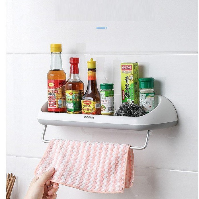 Kệ Để Đồ Phòng Tắm Kèm Giá Treo Khăn Lắp Đặt Dán Tường Cao Cấp Oenon