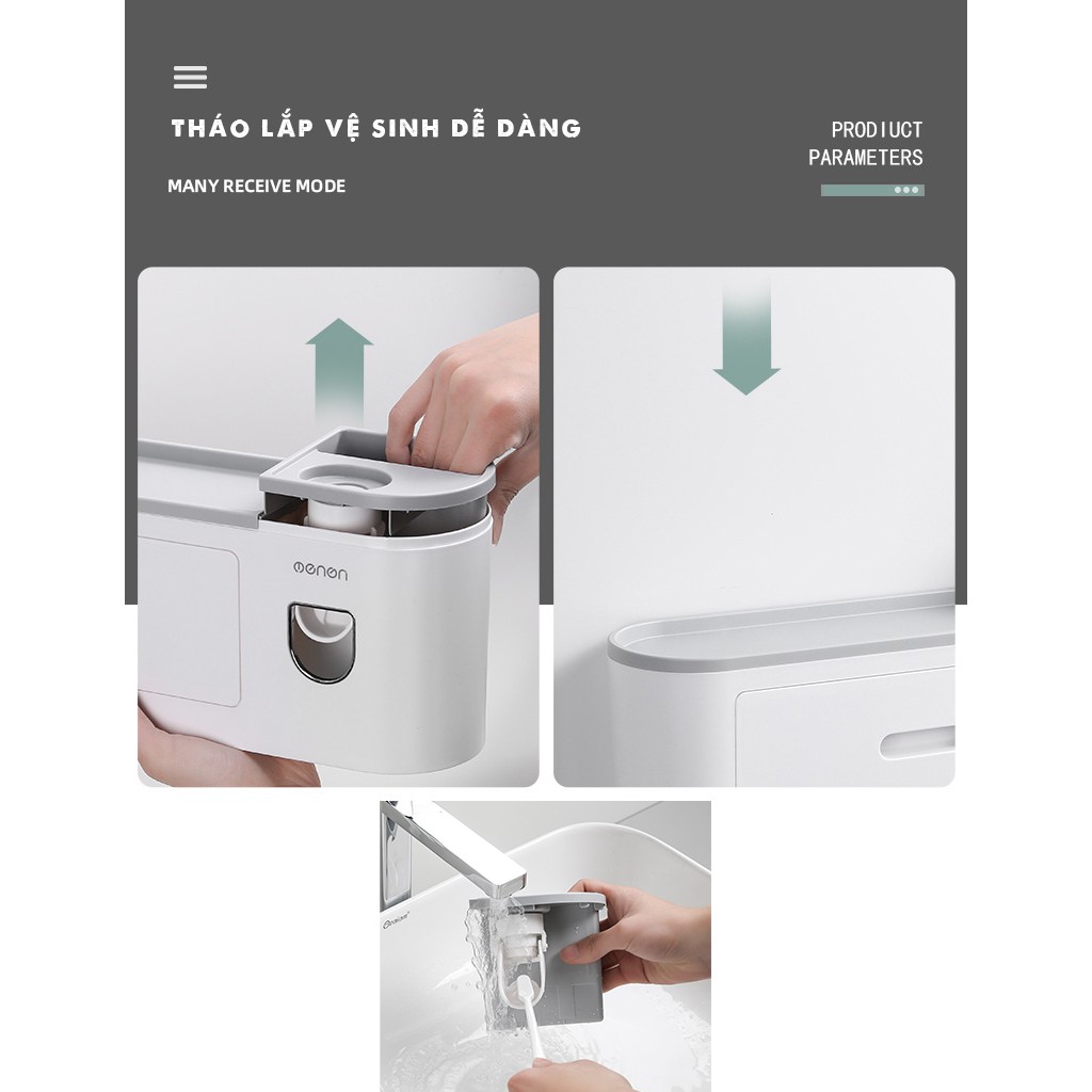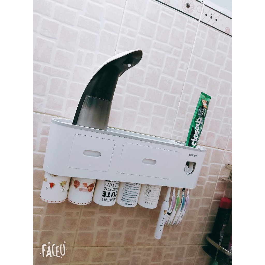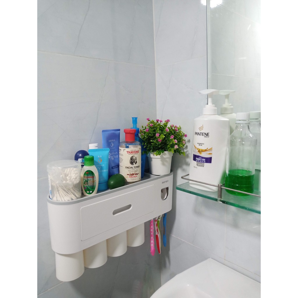 - Sản phẩm gồm: 1 Kệ nhà tắm tích hợp chức năng nhả Kem đanh răng tự động + Cốc hút từ tính + miếng dán tường