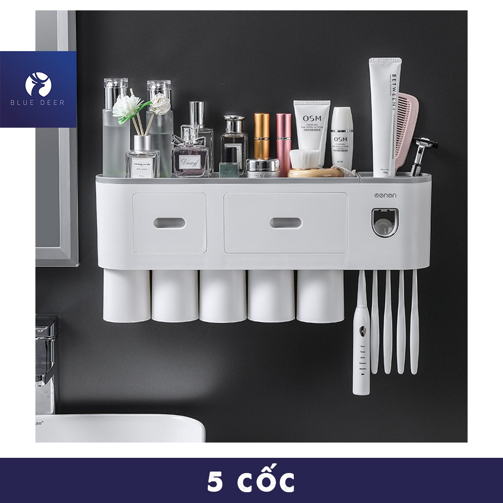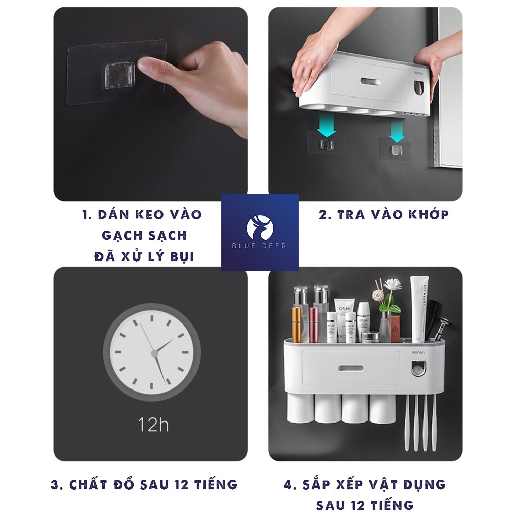 Kệ Để Đồ Phòng Tắm - Nhả Kem Đánh Răng Tự Động - Treo Bàn Chải Và Cốc Đánh Răng Tiện Lợi - Kèm Miếng Dán – BLUE DEER