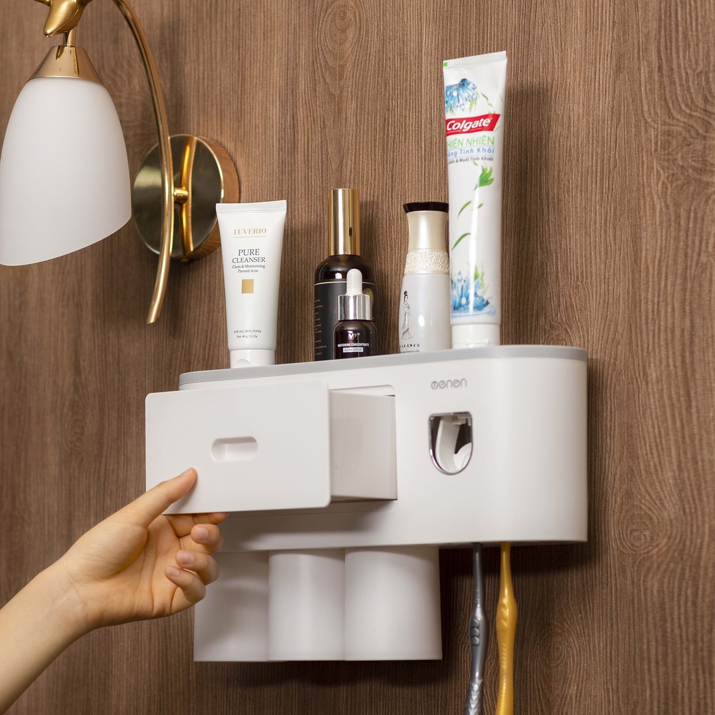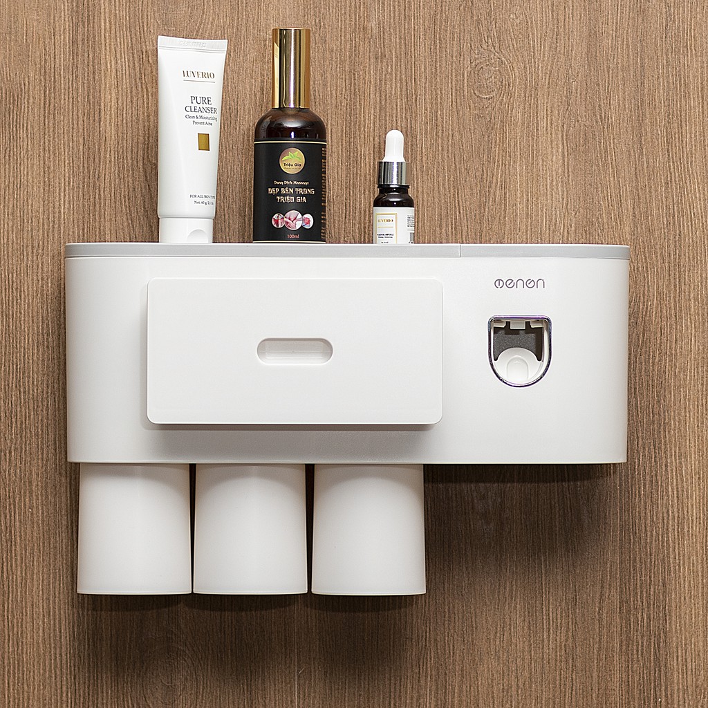 Nhà Cửa & Đời Sống > Đồ dùng phòng tắm > Kệ để đồ phòng tắm || Kệ Để Đồ Phòng Tắm Nhả Kem Tự Động Tặng Kèm Cốc, Bộ Nhả Kem Tự Động OENON 3 Cốc Đa Năng Dán TườngCòn hàng