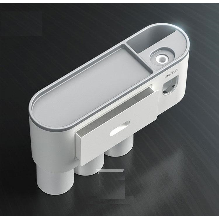 Kệ Để Đồ Phòng Tắm Treo Bàn Chải Và Cốc Đánh Răng Tiện Lợi, Bóp Kem Đánh Răng Tự Động (Bộ 3 Cốc)