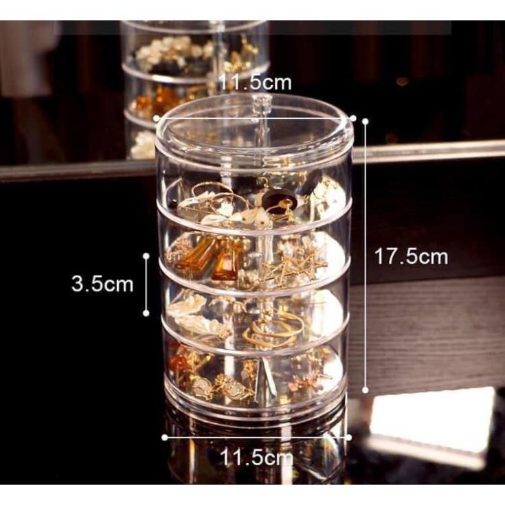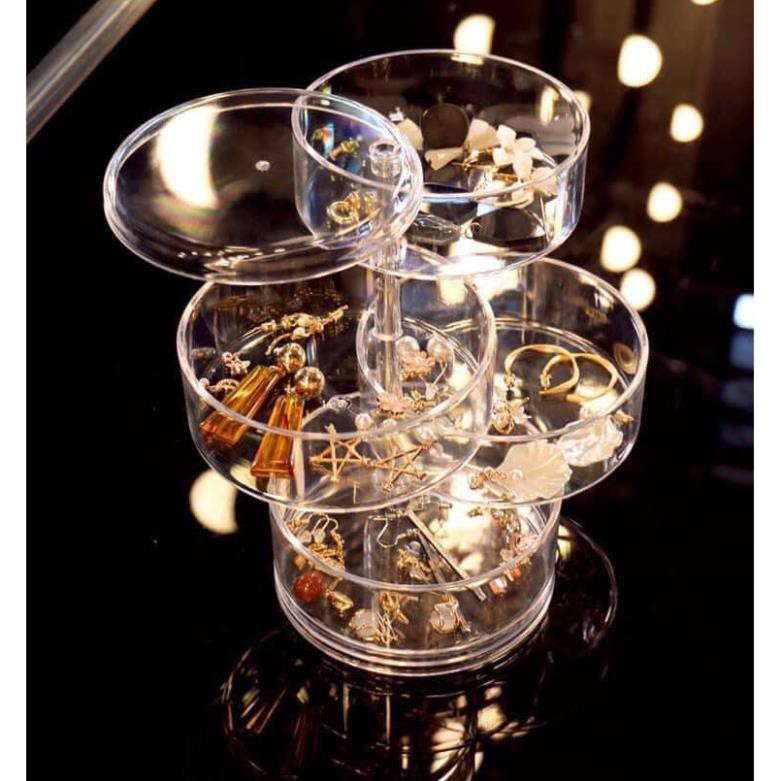KỆ ĐỂ ĐỒ TRANG SỨC 4 TẦNG TRONG SUỐT, XOAY 360 ĐỘ