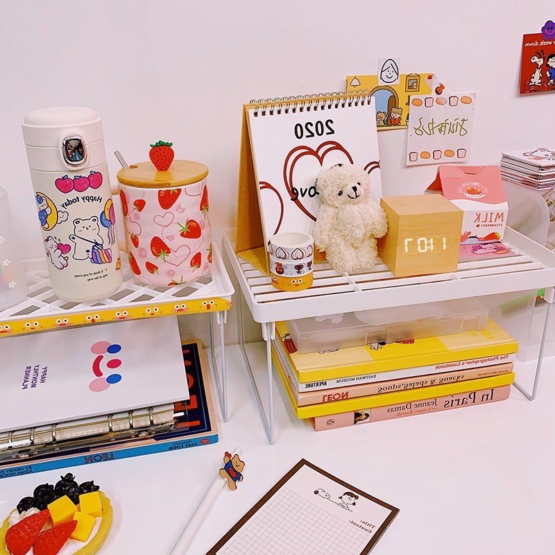 Kệ để đồ trang trí tiện ích kệ nhựa để bàn xếp gọn đa năng phong cách Hàn Quốc decor bàn học