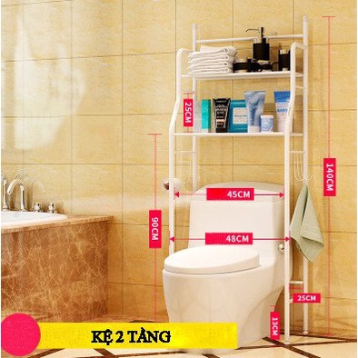-Kệ 2 tầng để đồ phía trên bồn cầu tiết kiệm không gian sẽ giúp cho các bạn tận dụng không gian phía trên của bồn vệ sinh để sắp đặt các đồ dùng rất tiện ích và tạo nên không gian sang trọng cho nhà tắm.