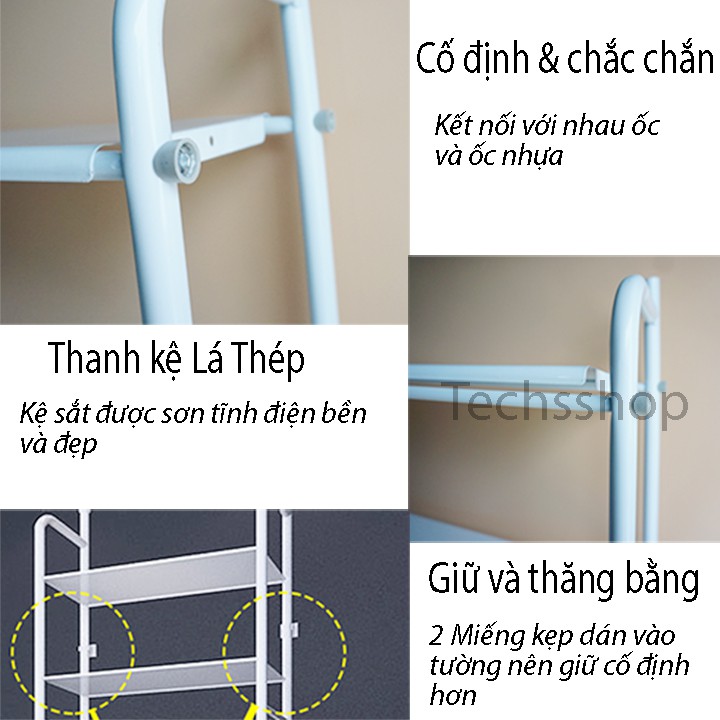Khung kệ vừa các loại máy giặt. Có 2 móc giữ cố định kệ bám chặt vào tường tăng tính cố định cho kệ không bị lung lai