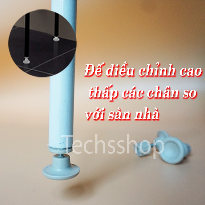 Kệ thiết kế theo kiểu lắp ghép. Mỗi điểm ghép nối bằng ốc và đệm nhựa nên cố định cứng cáp. Mỗi chân kệ có đế có thể điều chỉnh độ cao nên dễ cân bằng kệ phù hợp với nhiều vị trí.