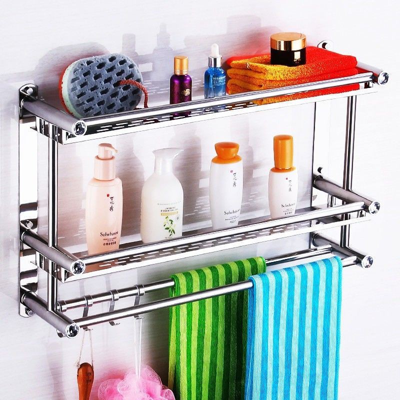 Kệ để đồ, treo khăn nhà tắm inox , kích thước 60x36,5x16cm
