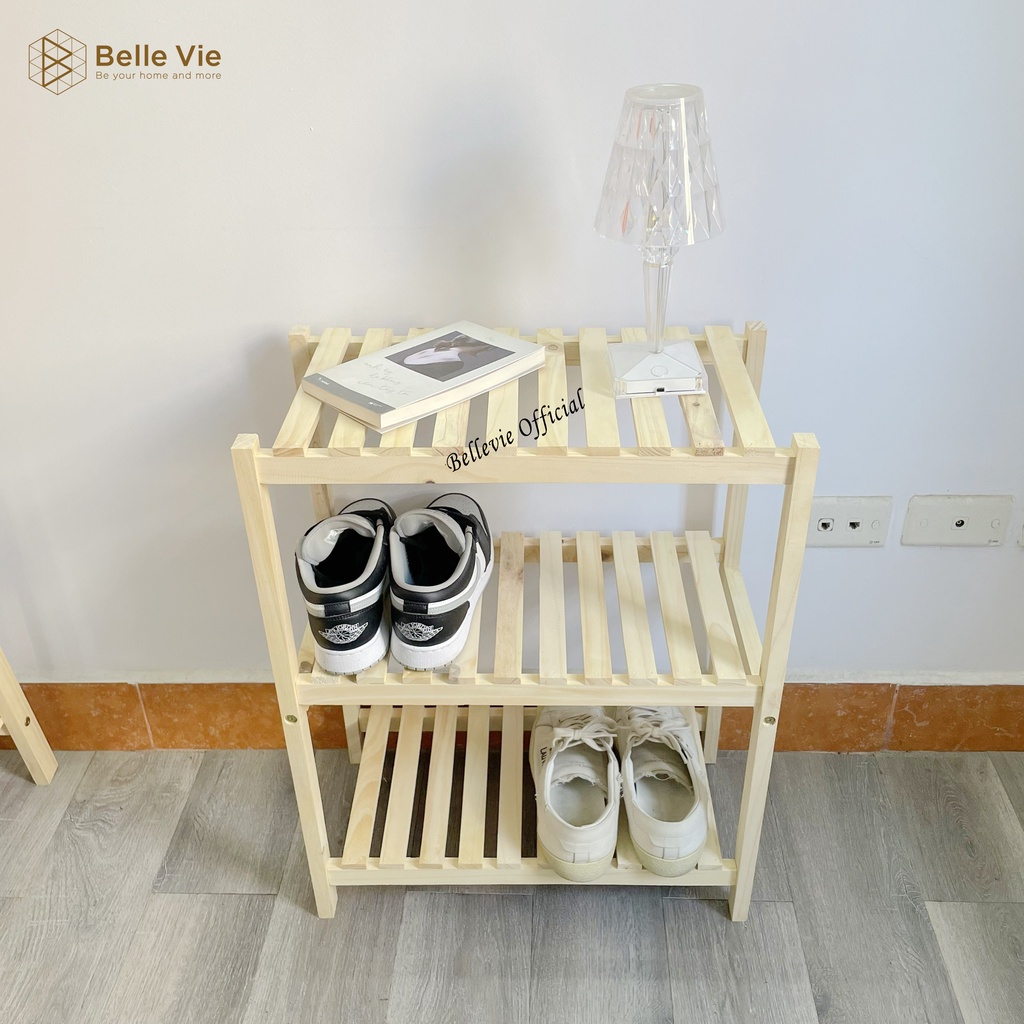 Kệ Để Giày 3 Tầng x 50cm BELLEVIE Kệ Gỗ Decor Phong Cách Hàn Quốc Hiện Đại KT 50Cm x 26Cm x 63Cm