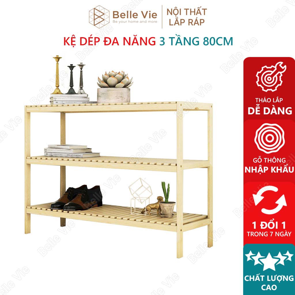 Giới thiệu Kệ Để Giày 3 Tầng x 80cm BELLEVIE Kệ Gỗ Trang Trí Decor Đơn Giản Hiện Đại KT 80Cm x 26Cm x 63Cm
