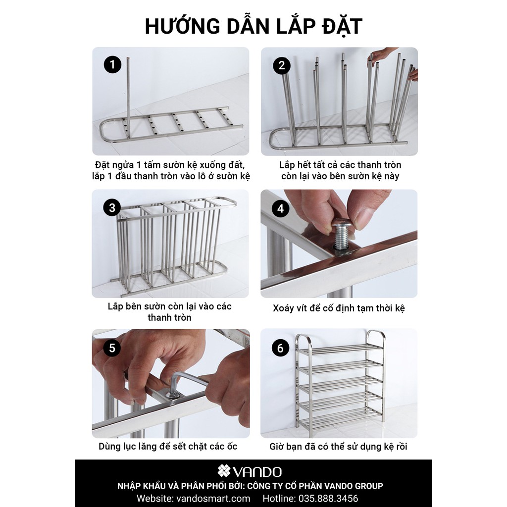 Giới thiệu [𝗙𝗿𝗲𝗲𝘀𝗵𝗶𝗽] Kệ để giày dép 3,4,5, 6 tầng khung inox cao cấp, dễ dàng tháo rời VANDO